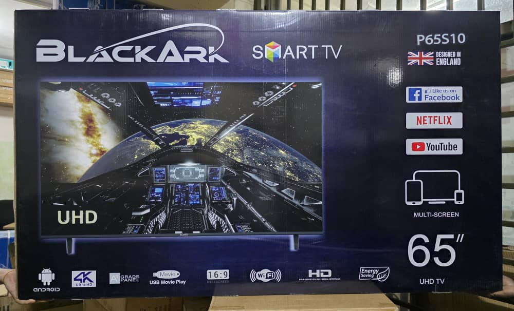 Key Features: Black Ark 65 Inch UHD 4K Smart Android TV, Frameless With VGA Input & Bluetooth, YouTube, Netflix, Prime Video, USB, HDMI, Inbuilt Free To Air Decoder, P65S10 – Black. 65 inch Frameless Smart Android TV UHD 4K Netflix, YouTube, Facebook & more Brand; BLACKARK