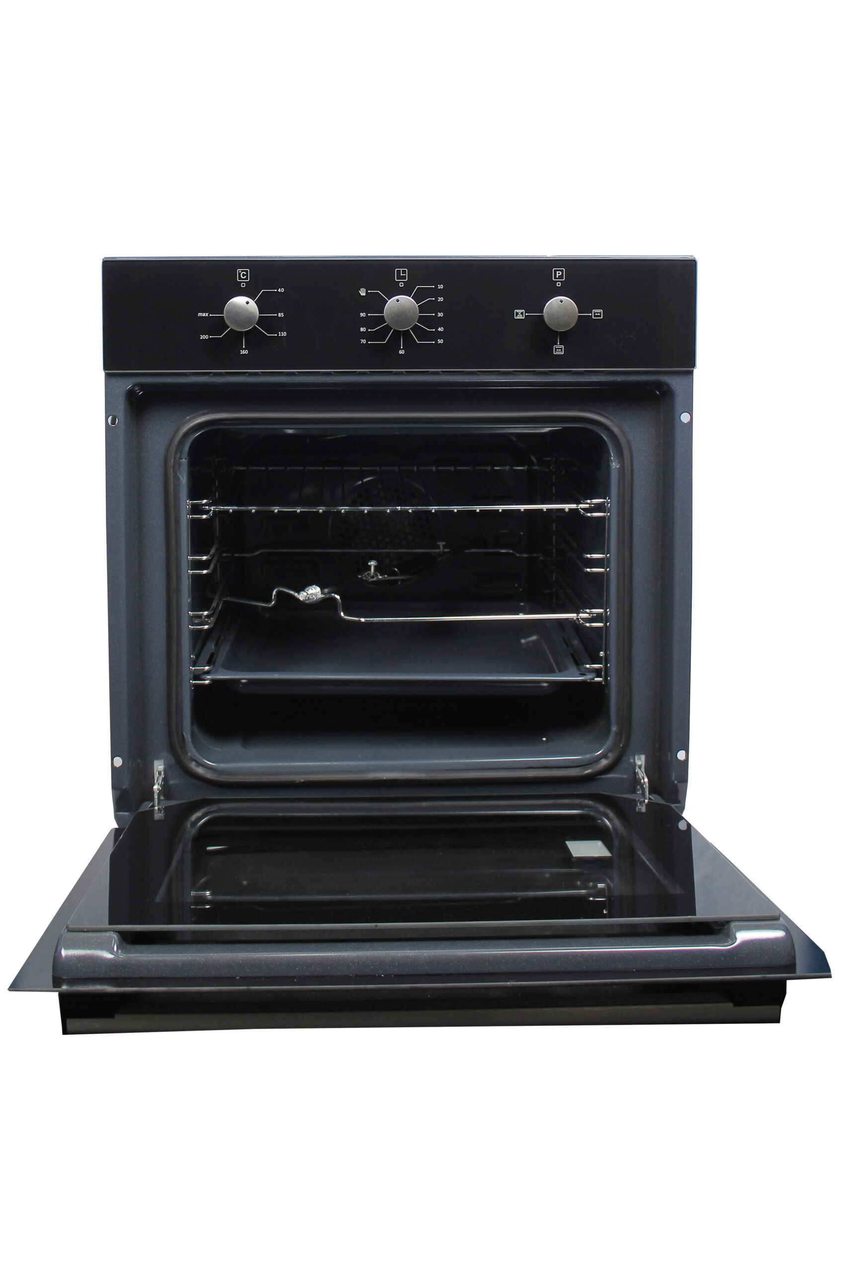 Blueflame 60cm Built-in Electric Oven 3002 BE3, Thermostat, Fan, Grill, Timer – Black. Electric oven Cooling Fan Up & Down Heating Elements Grill Heater Turbo Fan (0+6 Functions) Limit Thermostat Mechanical Timer Oven Lamp Tempered Black Glass Combined Control Panel 1 Oven Tray 1 Oven Wire Grid Double Glass Oven Door Silver Color Pop Up Knobs & Aluminum Handle Black in color 2 years of guarantee and 3 years of warranty