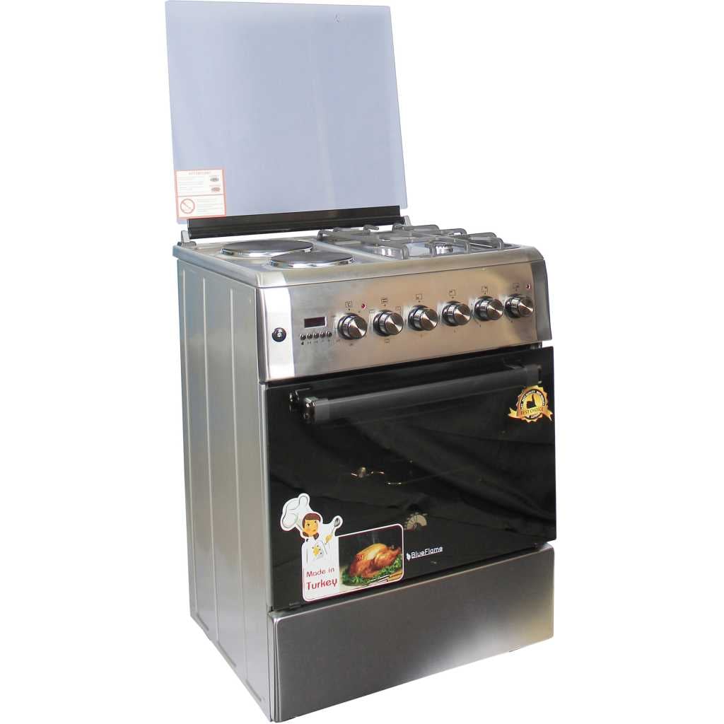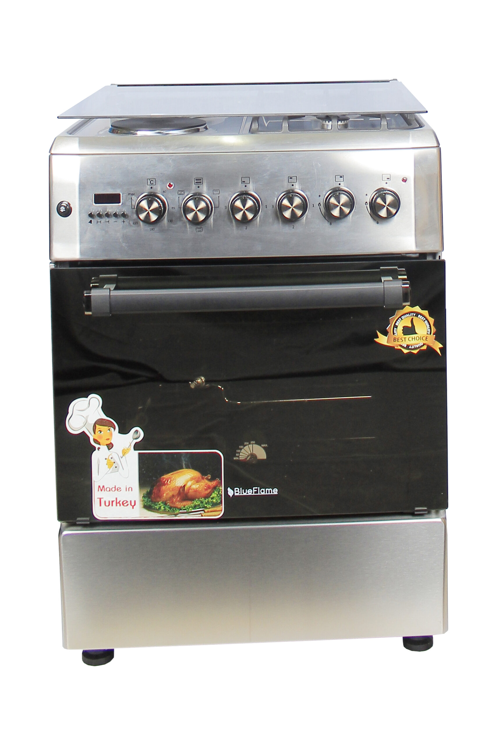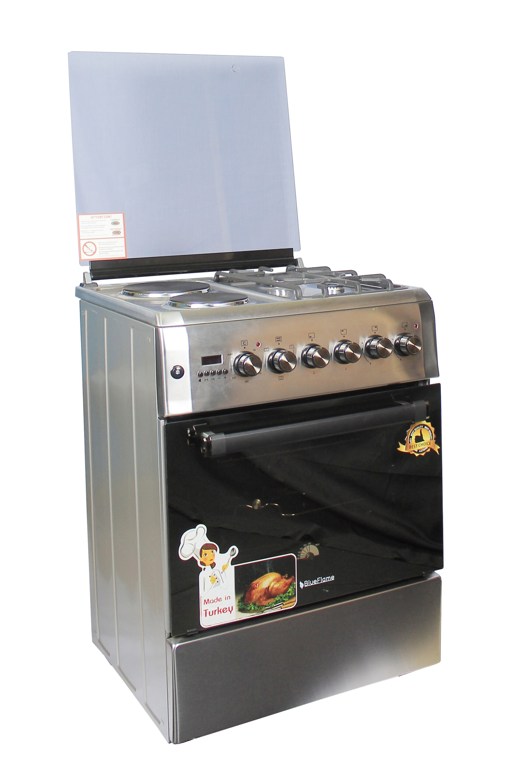 Blueflame Diamond 2 Gas and 2 Hotplate D6022ERF 60x60cm Cooker – Inox. Blueflame Diamond 2 Gas and 2 Hotplate D6022ERF 60x60cm Cooker – Inox. 2 Gas Burners 2 Electric plates Electric Oven Electric Grill Auto Ignition jet nozzles Turnspit(Rotisserie) Oven Lamp Digital Timer Turbo Fan Thermostat Cast Iron Grid(pan supports) 1 Tray + Wire Grid Glass Lid Adjustable Legs Stainless Steel 2 years of guarantee and 3 years of warranty Grab this deal and more from TilyExpress Uganda at unbeatable prices with doorstep delivery.