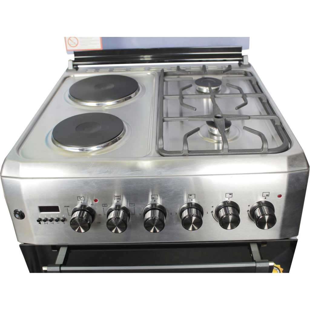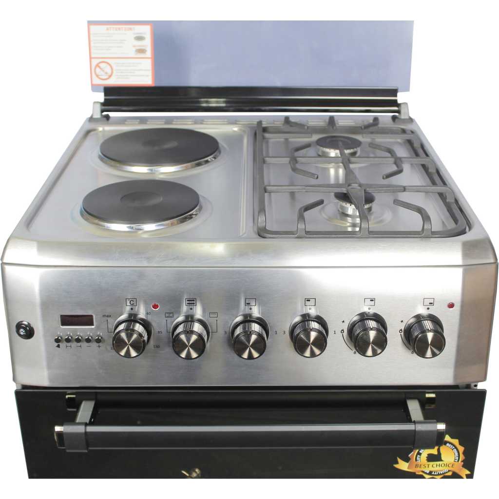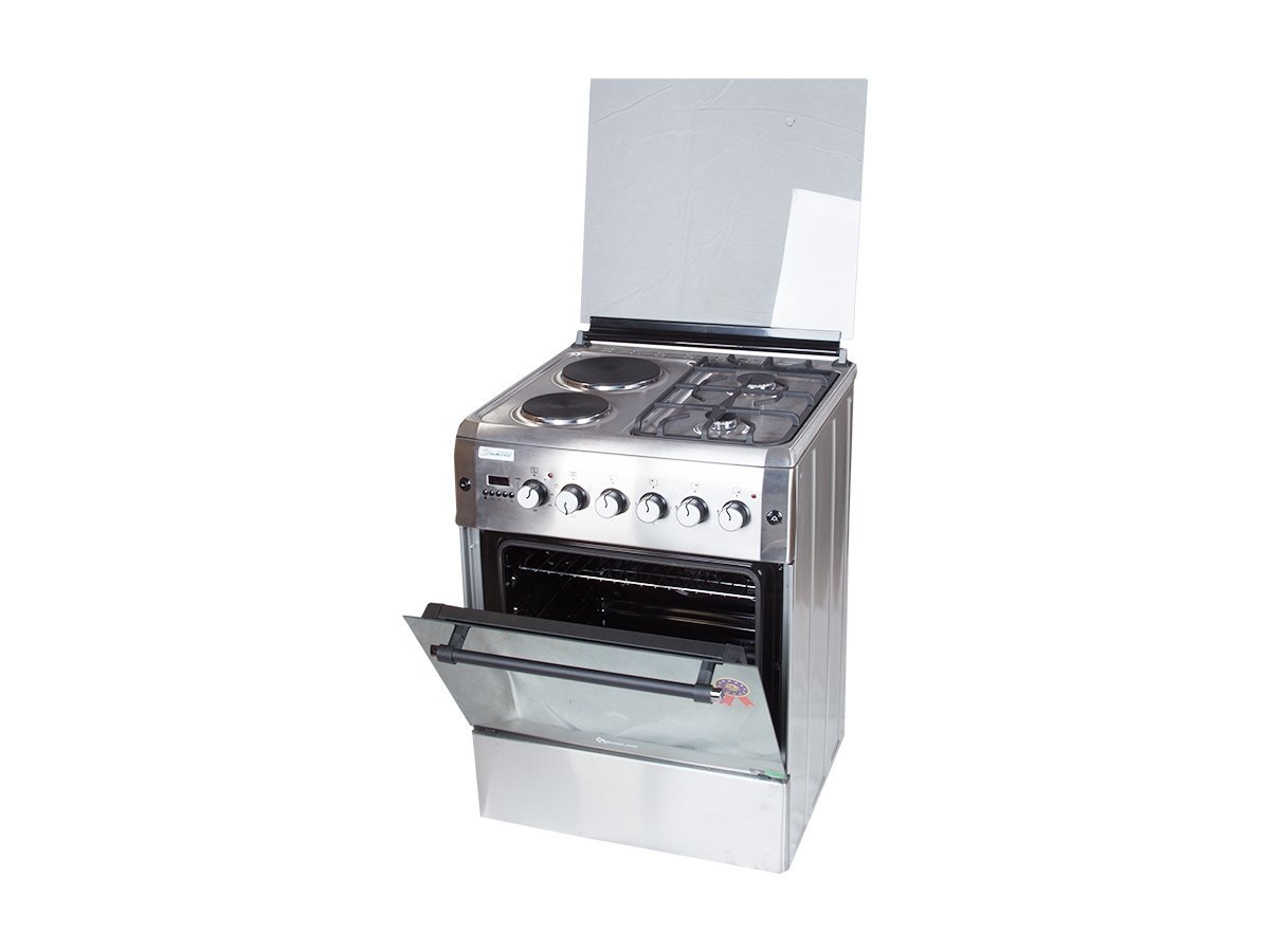 Key Features: Blueflame Diamond 2 Gas and 2 Hotplate D6022ERF 60x60cm Cooker – Inox. 2 Gas Burners 2 Electric plates Electric Oven Electric Grill Auto Ignition jet nozzles Turnspit(Rotisserie) Oven Lamp Digital Timer Turbo Fan Thermostat Cast Iron Grid(pan supports) 1 Tray + Wire Grid Glass Lid Adjustable Legs Stainless Steel 2 years of guarantee and 3 years of warranty