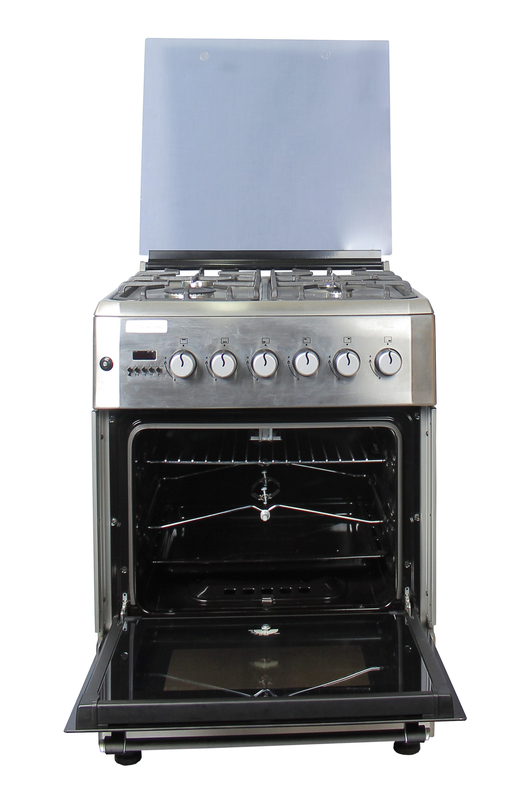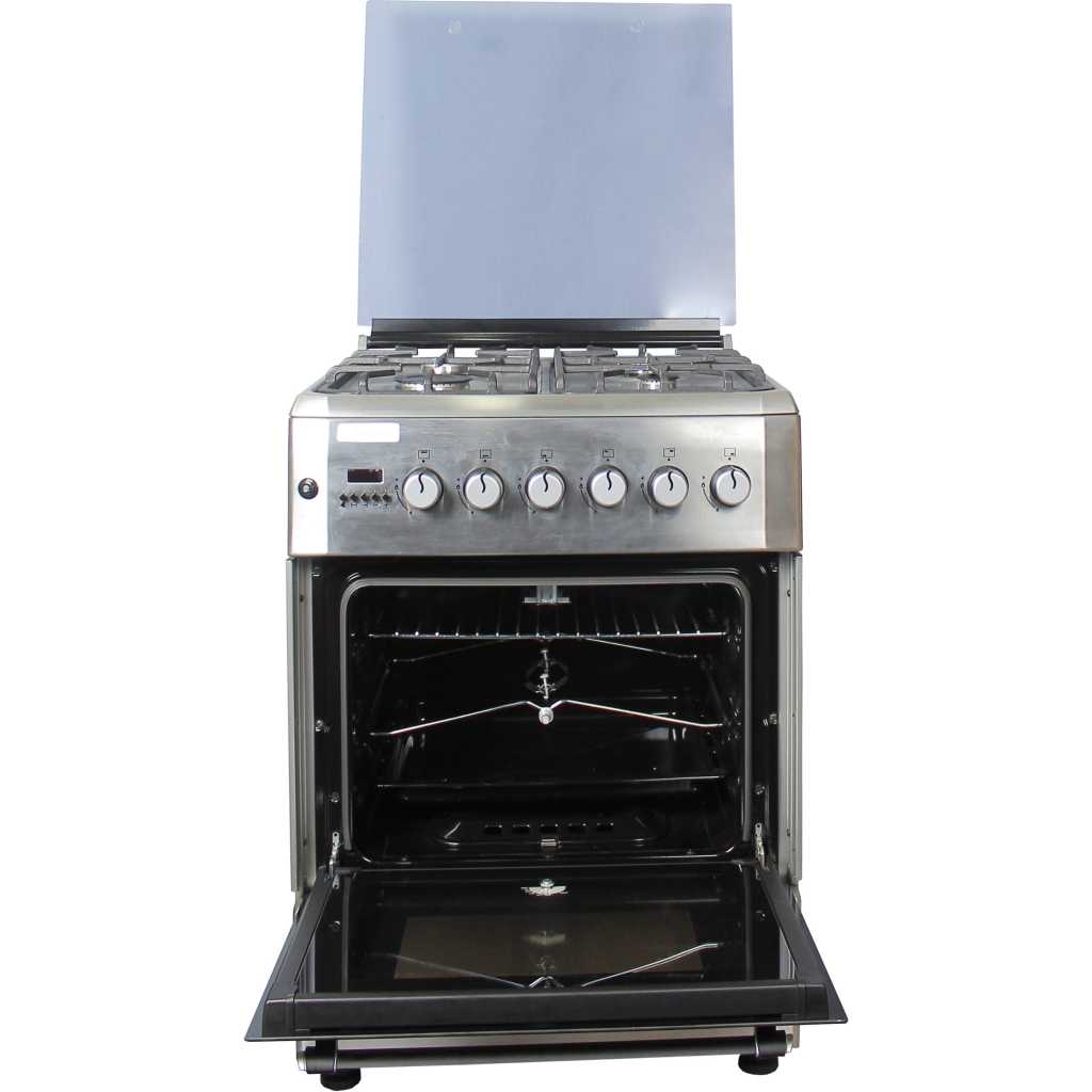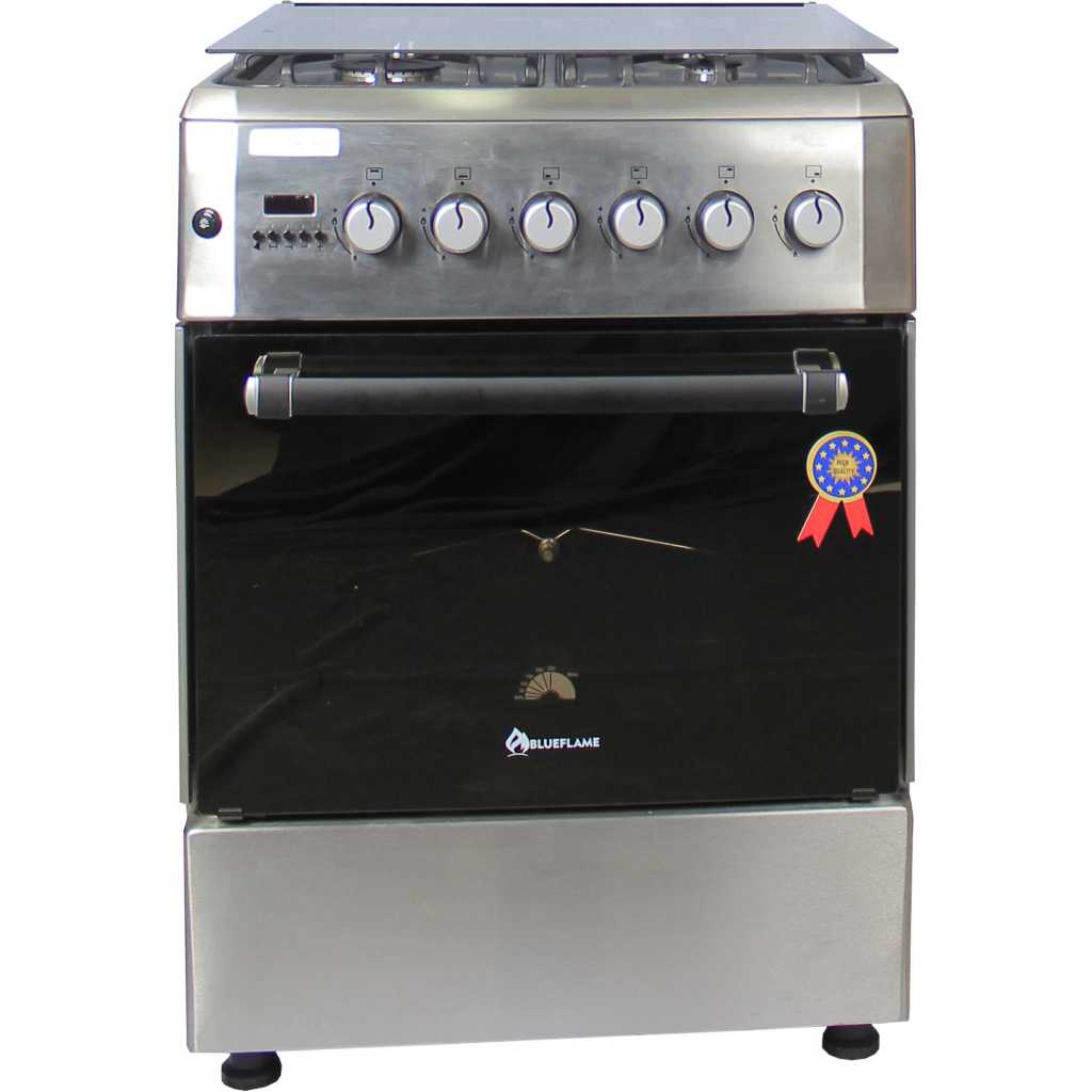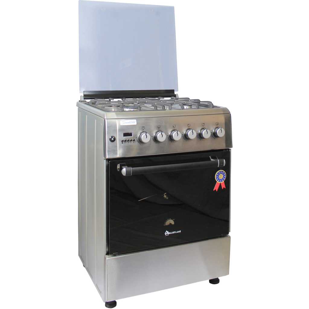 Key Features: Blueflame 60x60cm Diamond Cooker; Full Gas, 4 Gas Burners, D6040GRF; Gas Oven & Grill, Digital Timer, Thermostat, Oven Lamp, Cast Iron Pan Supports, Rotisserie, Auto Ignition – Inox 4 Gas Burners Gas Oven Auto Ignition jet nozzles Turnspit(Rotisserie) Oven Lamp Digital Timer Turbo Fan Cast Iron Grid(pan supports) 1 Tray + Wire Grid Glass Lid Adjustable Legs Stainless Steel 2 years of guarantee and 3 years of warranty