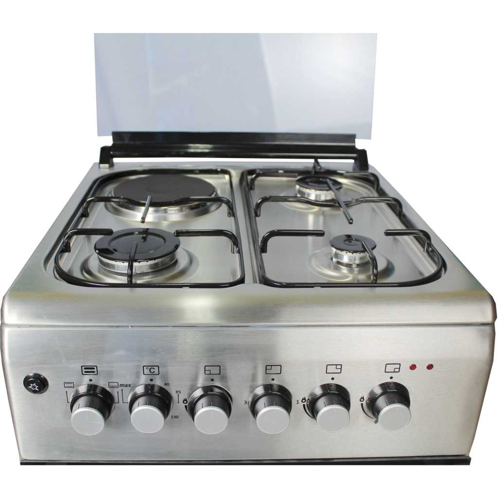 Blueflame Combo Cooker 60x50CM NL6031E, 3 Gas + 1 Electric Plate, Electric Oven & Grill, Auto Ignition, Thermostat, Oven Lamp – Inox. 1 Electrical Hot Plate 3 Gas Burners Electrical Oven Thermostat jet nozzles Push Button Ignition Enamel Oven & Hob Cavity Glass top Lid Oven lamp 1 Tray + Wire Grid Chromed Oven Rack Adjustable Legs Stainless steel 2 year gaurantee and 3 year warranty Key Features: Blueflame Combo Cooker 60x50CM NL6031E, 3 Gas + 1 Electric Plate, Electric Oven & Grill, Auto Ignition, Thermostat, Oven Lamp – Inox. 1 Electrical Hot Plate 3 Gas Burners Electrical Oven Thermostat jet nozzles Push Button Ignition Enamel Oven & Hob Cavity Glass top Lid Oven lamp 1 Tray + Wire Grid Chromed Oven Rack Adjustable Legs Stainless steel 2 year gaurantee and 3 year warranty