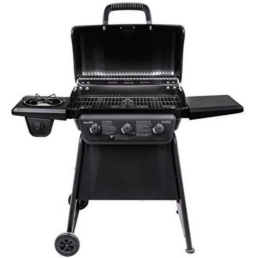 3 Burner BBQ Propane Gas Grill It can add fun to your outdoor life. You and your family can enjoy the fun of barbecue outdoors and enjoy the joy of food. 442 sq. in. Cooking Area 442 sq.in. cooking surface features rust-resistant porcelain-enameled cast iron grates and porcelain-enameled warming rack. Ample cooking space for about 15 burgers. Double-layer lid with Built-In Thermometer Double-layer lid ensures excellent heat retention for keeping food tasty and warm evenly. Built-in thermometer monitors temperature in real-time. 10,000 BTU Side Burner Use the side burner to simmer BBQ sauce or saute veggies while the main course grills under the lid. Fast & Reliable Startups Electronic ignition system offers fast startups with the push of a button. Bottle Opener BBQ’s own bottle opener allows you to drink at any time Food Scraps Tray Oil and food residue left in the grill will fall into this stainless steel tray, keeping the area you use clean. Side Prep Table Side shelves offer ample work and prep space. Galvanized Casters 2 Galvanized locking casters & 2 galvanized non-locking caster for easy fix and transport.
