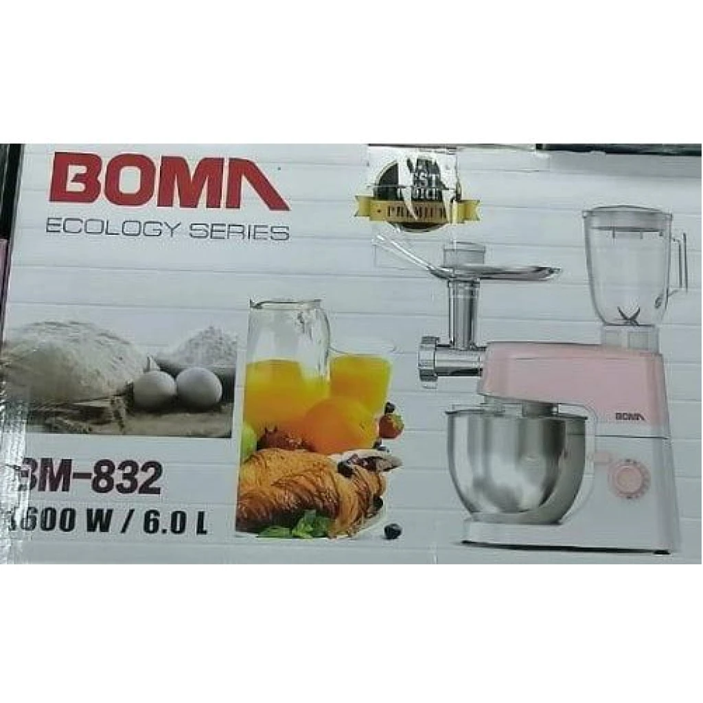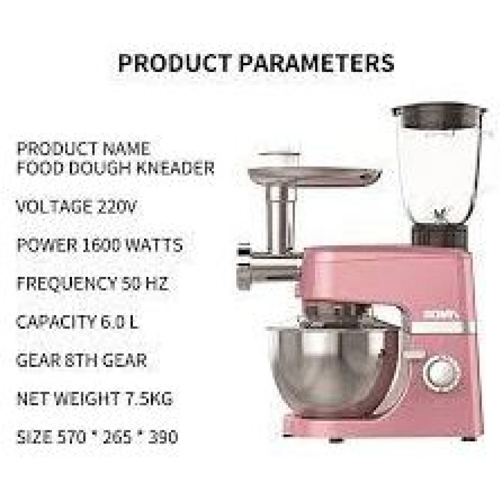 Boma 6Litre 5 IN 1 Stand Mixer 16000W Tilt-Head Multifunctional Electric Mixer With Stainless Steel Bowl, Beater, Hook, Whisk, Meat Grinder, Juice Blender With Glass Jar Dishwasher Safe - Multicolor