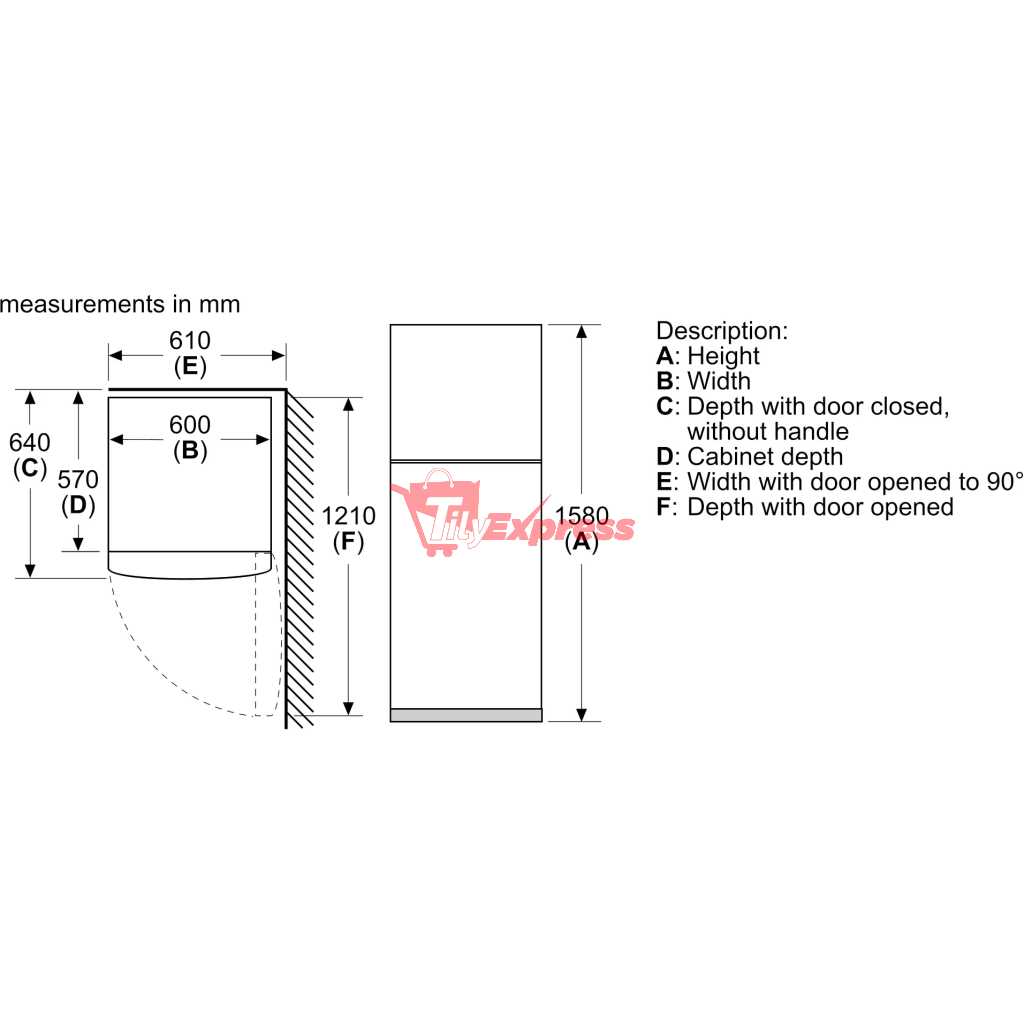 Bosch 260 Litre Fridge KDN43VL2N5; Frost Free Freestanding 2-Door Top Freezer Refrigerator – Inox. General