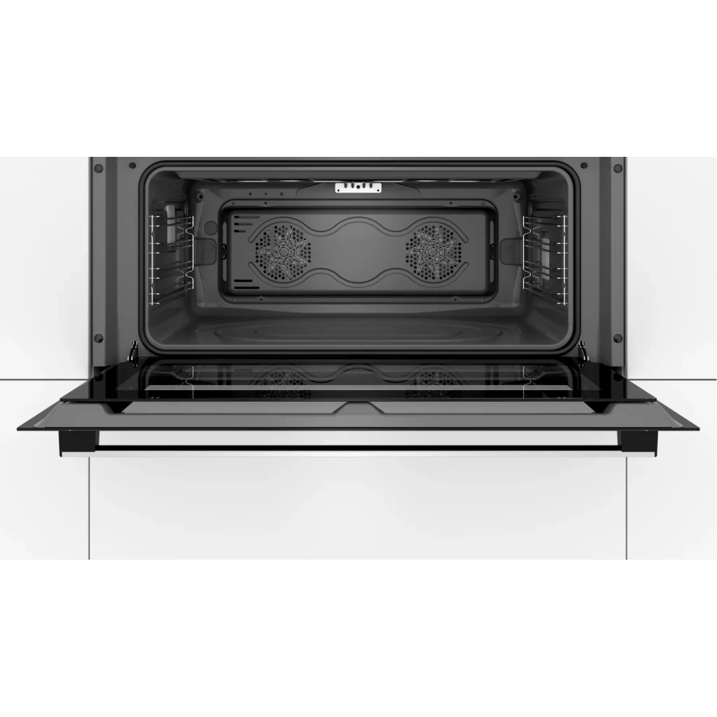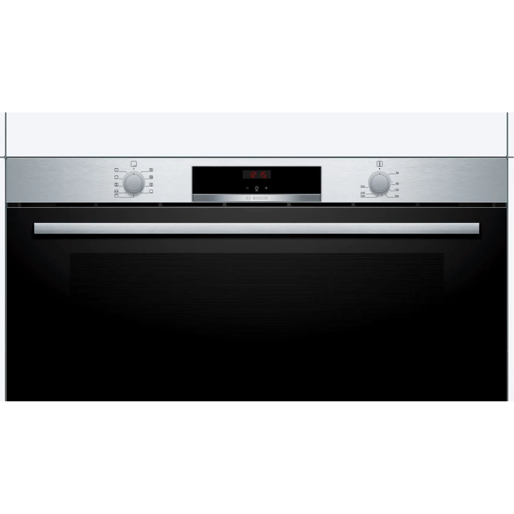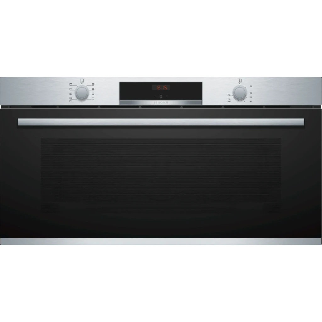 Key Features: Bosch 90cm Built In Electric Oven, VBC514CR0 (85 Litres, 90x48cm). The 90cm built-in oven: offers you the enough space for larger dishes Hotair: perfect results on two levels thanks to optimal distribution of heat LED display control, red: easy-to-use thanks to the time functions Electronic clock, Elongated halogen light, – Integral cooling fan, Extra large capacity oven with grey enamel