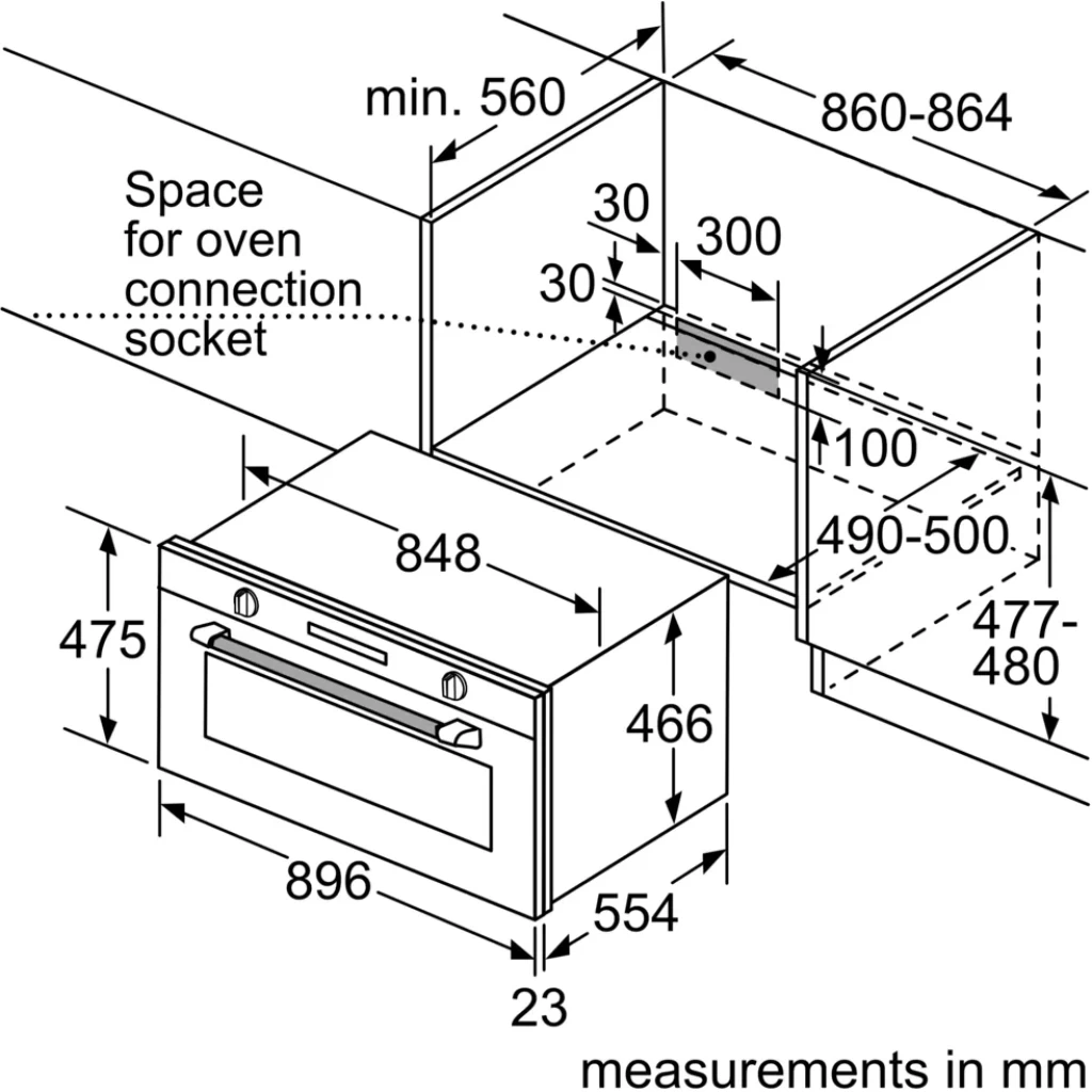 Bosch 90cm Built In Electric Oven, VBC514CR0 (85 Litres, 90x48cm). Brand Name Bosch Model Info VBC514CR0 Product Dimensions 60 x 90 x 50 cm; 55 Kilograms Capacity 85 Liters Annual Energy Consumption 350 Kilowatt Hours Per Year Installation Type Built-In Part Number VBC514CR0 Oven Cooking Mode Radiant Burner type Stainless Steel Color Black Voltage 240 Volts Wattage 3000 watts Fuel type Electric Included Components NO Batteries Required? No Item Weight 55 kg
