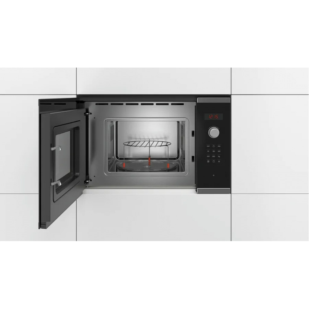Bosch Serie 4 Built-in 20 – Litres Microwave Oven With Grill 60 x 38 cm BEL523MS0B – Stainless Steel Cook all your favourite dishes to perfection with this built-in microwave from Bosch. With its 20 litre capacity, it’s a great choice for small households, and thanks to its 800 Watt output, you’ll never have to wait long for it to warm tasty snacks either. It has 8 fantastic AutoPilot programmes which automatically set the perfect time and temperature for a range of dishes. This means that you’ll achieve incredible results with every meal – from succulent joints of meat to light and fluffy desserts. It has a handy grill too, which lets you prepare deliciously crispy bacon for a tasty BLT with complete ease. This model has also been designed to fit in an eye level cabinet. Dimensions (cm) (H)38.2 x (W)59.4 x (D)31.7 Capacity 20 Litres Control Type Dial / Touch Number of Power Levels 5 Maximum Microwave Power 800 Watt