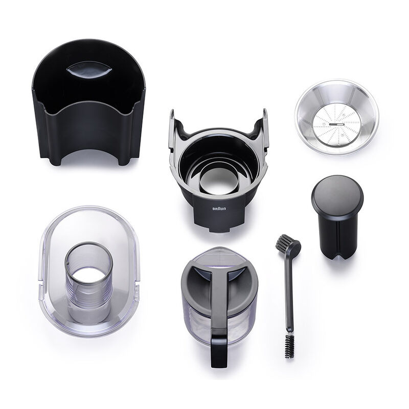 Braun J300 IdentityCollection Spin Juicer | 800W Juice Extractor. 2 speeds to process both soft and hard fruits Anti-splash spout enables the juice to flow vertically into the glass Pulp container which is ergonomic and easy to remove 4-way safety means if one of the security conditions is not met the motor will stop within 3 seconds Fast juicing at only 15 seconds to enjoy one glass of juice 2L pulp Container