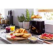 Bread & Button 2 Slice Electric Toaster – Silver Sometimes there is nothing better than a slice of hot buttered toast! This 2 slice toaster is classic styled and makes it easy to get the perfect toast just the way you like it. With variable browning control you can easily make the perfect slice toast. High lift and automatic shut off makes it easier and safer for you to use. It has the cool touch side panels.It fits easily on any counter top with minimal space usage.