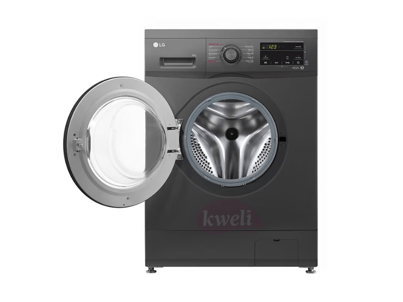 LG 8kg Front Load Washing Machine F4J3TYG6J (2023) 8kg Front Load Washing Machine 1400 Rpm Inverter Direct Drive Motor 6 Motion Technology Smart Diagnosis Steam Function 13 Wash Programs (3 Steam, 10 Non-Steam) Steam Programs (Steam Cotton, Allergy Care, Baby Steam Care) Non-Steam Programs (Cotton, Cotton Large, Mix, Easy Care, Sports Wear, Delicate, Wool, Intensive 60, Quick 30, Rinse & Spin) Additional Options (Medic Rinse, Pre-Wash, Time Delay, Intensive, Crease Care, Tub Clean) 6 Spin Options (Rinse Hold, No Spin, 400, 800, 1000, 1400) 6 Temperature Options (Cold, 20, 30, 40, 60, 95) Child Lock Emergency Drain Filter Silver Finish | #KweliGotYou| Order LG 8kg Front Load Washing Machine F4J3TYG6J; 1400rpm, Steam Option, 6 Motion Inverter Direct Drive online and enjoy free delivery across Uganda > Long warranty > Lifetime After-sales Support