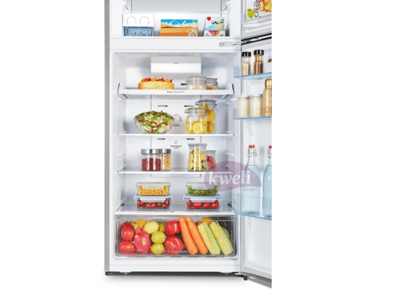 Hisense 328L Double Door Refrigerator RT328N4DGN Total capacity: 328 litres Fridge Net capacity: 198 litres Freezer Net capacity: 53 litres Dimensions: 550*605*1656 mm Top mount freezer Total no frost Electronic control Interior LED light for fridge compartment Multi-air flow system Humidity Control Input Voltage: 220-240V Power consumption: 120 watts Silver in Colour