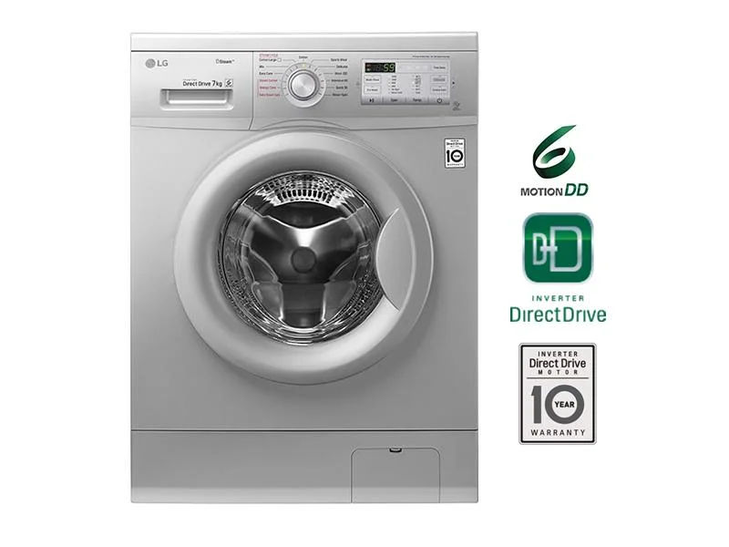 LG 7kg Washing Machine Front Loading washing machine 1200 Rpm Inverter Direct Drive Motor 6 Motion Technology Smart Diagnosis Steam Function 13 Wash Programs (3 Steam, 10 Non-Steam) Steam Programs (Steam Cotton, Allergy Care, Baby Steam Care) Non-Steam Programs (Cotton, Cotton Large, Mix, Easy Care, Sports Wear, Delicate, Wool, Intensive 60, Quick 30, Rinse & Spin) Additional Options (Medic Rinse, Pre-Wash, Time Delay, Intensive, Crease Care, Tub Clean) 6 Spin Options (Rinse Hold, No Spin, 400, 800, 1000, 1400) 6 Temperature Options (Cold, 20, 30, 40, 60, 95) Child Lock Emergency Drain Filter Silver Finish | #KweliGotYou| Order LG 7kg Front Load Washing Machine FH2J3QDNG5P; 1200 rpm, Steam Option, 6 Motion Inverter Direct Drive, online and enjoy free delivery across Uganda > Long warranty > Lifetime After-sales Support