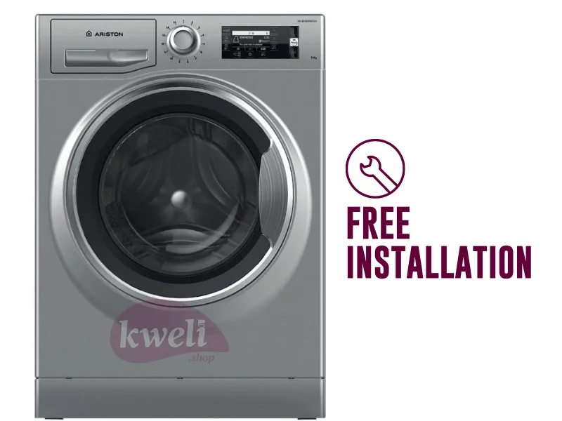 Buy new Ariston 11kg Front Loading Washing Machine with Steam NLLCD1165SCAD EX, Pre Wash, and Stop & Add Wash, Inverter Motor, Silver in Uganda - - Free Delivery > Long warranty > Lifetime After-sales