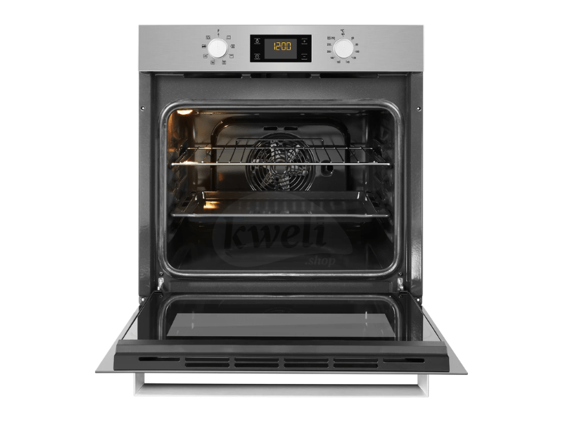 Ariston 60cm Built-in Multifunction Oven FA3 540 HIX Type: Electric Oven Oven Fan Temperature range; 60°-250° Integrated cleaning system: Hydrolytic Cavity material: Enamelled Usable volume (of the cavity) (l): 66 Home net: Not available Multilevel: Electronic Voltage (V): 220-240 Frequency (Hz): 50/60 Colour: Inox Electrical connection rating (W): 2900 Plug type: No Oven guides: Wall-embedded EAN code: 8050147001585 Energy efficiency class: A Cooking method: Multifunction Energy consumption conventional (kWh): 0.99 Energy consumption forced air convection (kWh): 0.79 8 programs including;- Grill, Pizza, Turbo Grill, and Bread. Dimesnions: Height (cm): 59.5, Width (cm): 59.5, Depth (cm): 55.1 | #KweliGotYou| Order Ariston 60cm Built-in Multifunction Oven FA3 540 HIX; 66-litres, Digital Display with Touch Controls, Oven Fan, 60°-250° online and enjoy free delivery across Uganda > Long warranty > Lifetime After-sales Support