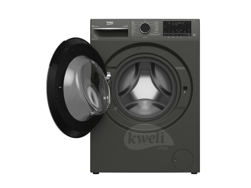 Beko 10kg Front Loading Washing Machine BAW100 UK Specifications: Capacity: 10kg washing capacity Spin Speed: 1400 rpm Energy Rating: A+++ (-10%) Technology: Beko SteamCure for deep cleaning and reduced creasing Beko ProSmart Inverter Motor (Brushless Silent) for quiet and reliable operation AquaFusion Technology for optimal detergent use and reduced waste Automatic Water Control to adjust water levels based on load size Programs: 15 tailored programs to meet various washing needs Colour: Manhattan Grey Plug Type: UK plug Dimensions: Height: 840 mm Width: 600 mm Depth: 670 mm | #KweliGotYou| Order Beko 10kg Front Loading Washing Machine BAW100 UK; A+++ Energy Rated, 1400 RPM, SteamCure, ProSmart Inverter Motor, AquaFusion, Manhattan Grey online and enjoy free delivery across Uganda > Long warranty > Lifetime After-sales Support