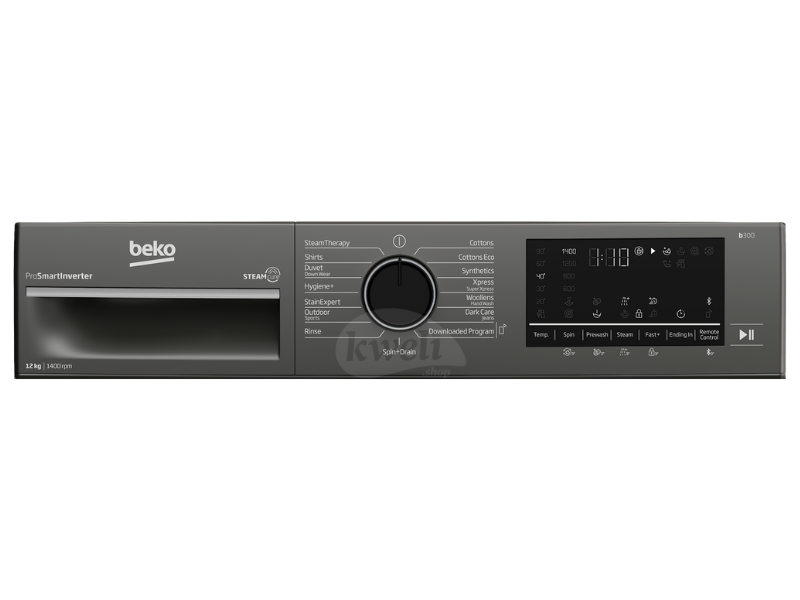 Beko 12kg Front Loading Washing Machine B3WFT51242MG Specifications: Capacity: 12kg washing capacity Spin Speed: 1400 rpm Energy Rating: A+++ (-10%) Technology: Beko SteamCure Beko ProSmart Inverter Motor (Brushless Silent) AntiCrease+ Function Add Garment Function Programs: 15 programs Colour: Manhattan Grey Plug Type: UK plug Dimensions: Height: 840 mm Width: 600 mm Depth: 670 mm