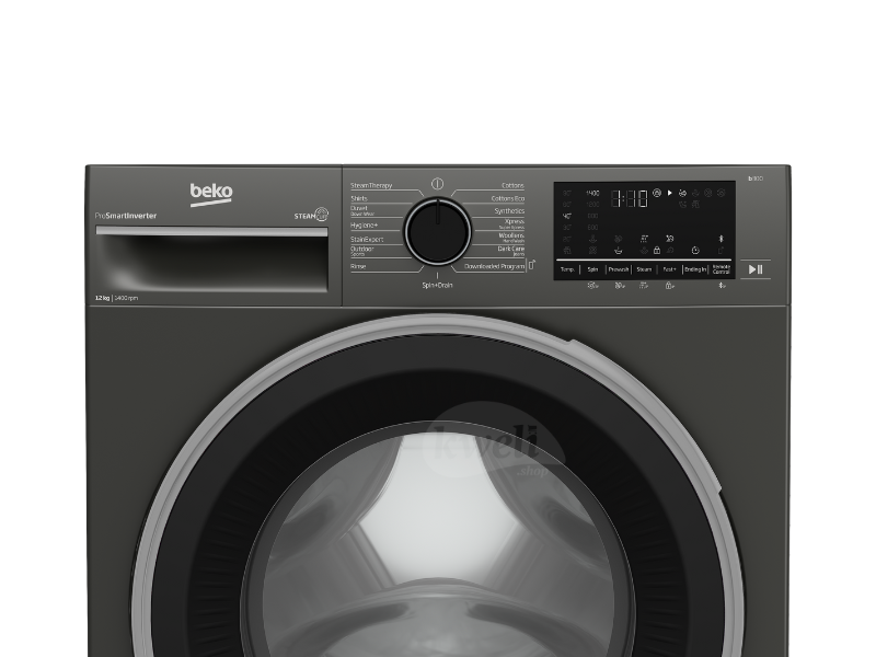Description Beko 12kg Front Loading Washing Machine B3WFT51242MG This Beko 12kg washing machine is a lifesaver! It handles big loads, saves electricity with its A+++ rating, and even uses steam to remove stains and wrinkles. It’s quiet, fast, and perfect for making laundry day effortless!