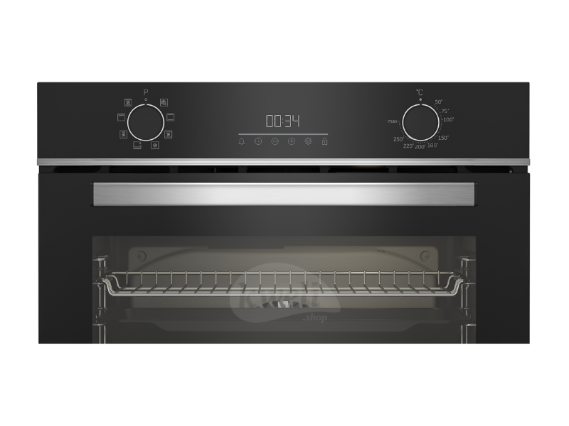 Beko Built-In Oven BBIM14300BCCH Specifications: Type: Built-in fan-assisted oven with 8 functions Colour: Black Control: Mechanical control with LED display and touch control Door: Removable full glass door for easy cleaning Accessories: 2 x Standard Trays Cleaning: Steam cleaning for effortless maintenance Dimensions: Height: 595 mm Width: 594 mm Depth: 567 mm Oven Functions: Fan-Assisted Cooking: Even heat distribution for consistent baking and roasting Conventional Cooking: Top and bottom heat for traditional cooking Bottom Heating: Ideal for slow cooking and crisping bases Electric Grill: Perfect for browning and grilling Low Grill with Fan: Gentle grilling with better heat distribution Defrost: Quick and gentle thawing of frozen foods Fan Heating: Efficient cooking with hot air circulation 3D Cooking: Simultaneous cooking on multiple levels