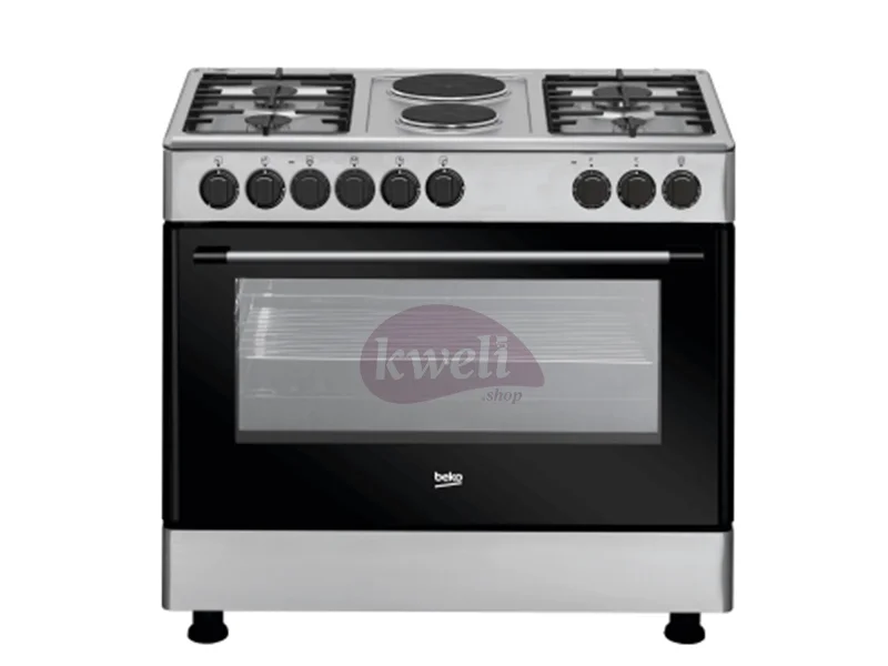 Buy new Beko Cooker 90cm Cooker with Fan-assisted Electric Oven GE 12121 DX - 4 Gas + 2 Electric Hot plate, Grill, Rotiserrie, Timer, Automatic gas cut-off in Uganda - - Free Delivery > Long warranty