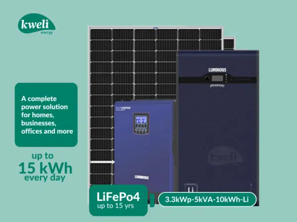 Description Blue Carbon 1.63kWh Solar Home System Carbon BOX BCT-CB1.0 Product Description The Blue Carbon Carbon BOX BCT-CB1.0 Solar Home System is a compact all-in-one solar power unit designed for homes and small businesses that need reliable electricity where grid power is limited or unavailable. Inside the Carbon BOX is a 1.63kWh lithium iron phosphate battery, a built-in inverter and solar charging electronics. During the day, solar panels generate electricity and charge the battery. The stored energy is then converted into AC power to run household appliances. With a 500W output capacity, the system can power essential devices such as lights, TVs, fans, computers and other small appliances. It works well in homes, shops, farms and remote locations where a simple solar power solution is needed. The system accepts solar panels up to 550W, allowing it to recharge efficiently during the day while providing electricity to connected loads. Its slim design also allows it to be mounted on a wall, helping save space and keeping the installation neat. Key Features All-in-one solar power system with battery, inverter and solar input. Lithium iron phosphate battery for long life and improved safety. 500W AC output suitable for essential household appliances. Supports solar panels up to 550W for efficient daytime charging. Simple installation with optional wall-mount bracket. Battery and charging indicators for easy monitoring. Typical Applications The Carbon BOX can power common devices such as: Lights Television Fan Laptop or computer Small kitchen appliances It is commonly used in: Off-grid homes Rural electrification projects Farms and plantations Small shops and kiosks Outdoor activities and camping Market stalls and small restaurants Technical Specifications System Model: BCT-CB1.0 Battery Capacity: 85Ah Battery Voltage: 19.2V Energy Storage: 1.632kWh Output Power: 500W AC Output Voltage: 220V / 110V Solar Input PV Input Voltage: 21–28V Maximum Solar Panel Power: 550W Battery Battery Type: Lithium Iron Phosphate (LiFePO₄) Indicators Battery Level Indicator Charging Indicator Light AC Output Indicator Light Why Buy from Kweli.shop When you buy from Kweli.shop , you are guaranteed: Genuine solar equipment Manufacturer warranty support Free delivery within Uganda Lifetime after-sales support