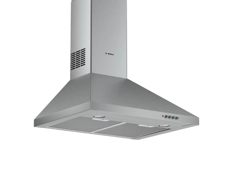 Bosch 60cm Wall-mounted Cooker Hood Silent: maximal extractor performance with little noise Extraction rate: at MAX_FOERDERLEISTUNG m3/h, it quickly ensures optimal kitchen air quality. Metal grease filters: filter grease and other solid particles out of the extracted air Pi-shaped double metal filter Colour: Stainless steel Installation typology: Wall-mounted Total power of the motors: 125 watts Number of speed settings: 3 Grease filter material: Washable aluminium Energy efficiency class: D Sound power at max. speed (recirculation): 70 dB Total annual energy consumption: 72.8 kWh/annum | #KweliGotYou| Order Bosch 60cm Wall-mounted Cooker Hood DWP64CC50Z; Electric Chimney Hood, Grease Filter, Stainless Steel online and enjoy free delivery across Uganda > Long warranty > Lifetime After-sales Support