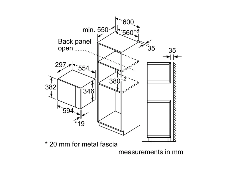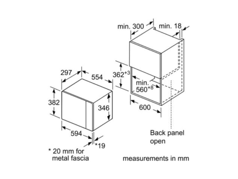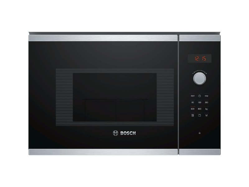 Bosch Built-in Microwave with Grill BEL523MS0B Width: 60cm, Height: 38cm Stainless steel 20-litre capacity 5 power levels: 90w, 180w, 360w, 600w, 800w Dimensions: 382 x 594 x 317 mm Pop-out controls: for an easy-to-clean oven LED lighting Stainless steel finish Safety device: Door contact switch, Safety switch-off function oven 8 Automatic programmes Included accessories; 1 x grid, 1 x Turntable | #KweliGotYou| Order Bosch Serie 4 Built-in Microwave with Grill BEL523MS0B; 60cm, 20-litres, Stainless Steel, 90-800 watts online and enjoy free delivery across Uganda > Long warranty > Lifetime After-sales Support