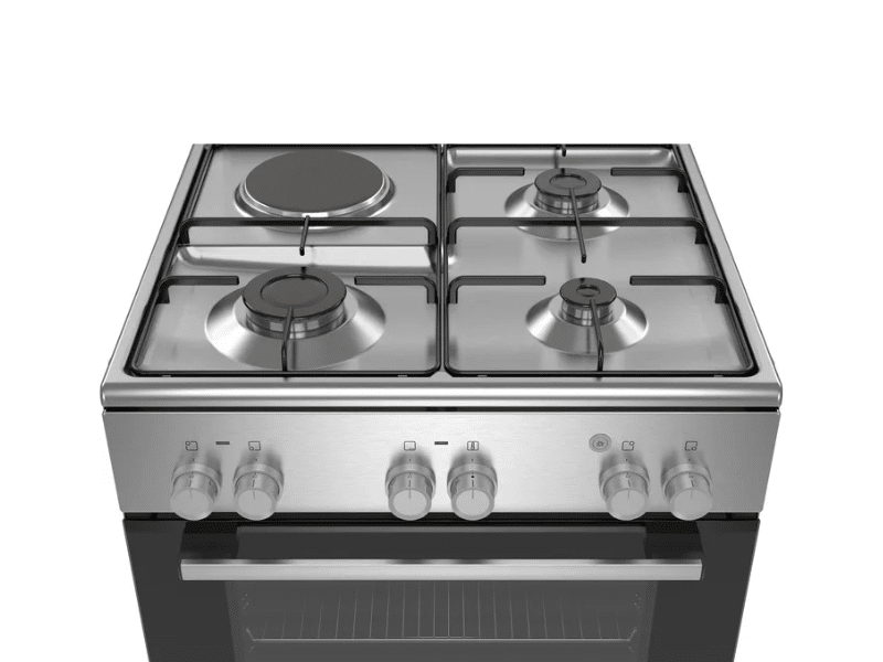 Bosch Series 2 Freestanding Dual Fuel Cooker HXA050F50S Dual Fuel Design: Combines 3 gas burners and 1 electric hotplate with an electric oven for flexible cooking. Full Flame Safety System: Automatically cuts off gas supply if the flame is extinguished. Five Cooking Modes: Multiple oven functions for versatile baking and roasting. Stainless Steel Finish: Durable, premium look that blends with modern kitchens. Top/Bottom Heat Mode: Consistent heat distribution for even cooking results. Easy-to-Clean Enamel Grates: Dishwasher-safe for hassle-free maintenance.