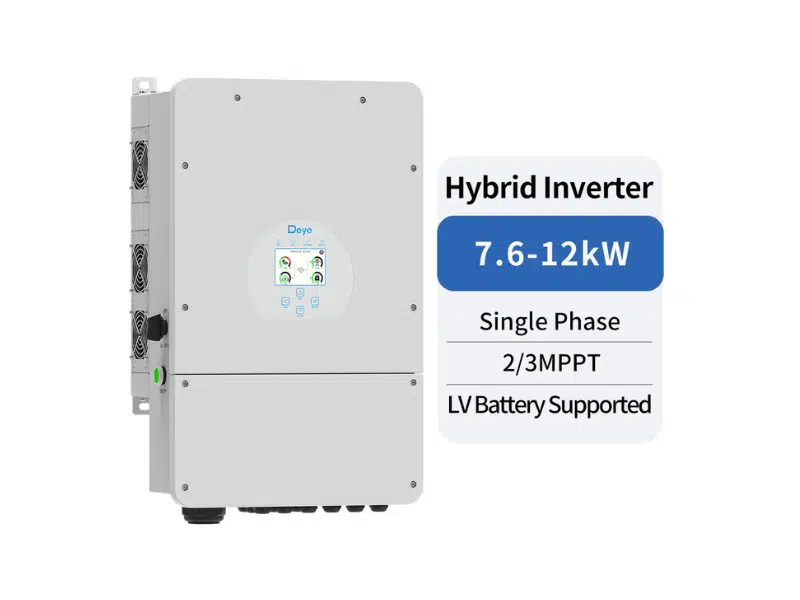 Deye 12kVA/12kW 48V Single Phase Hybrid Inverter highlights 12kW single-phase hybrid output suitable for large homes and light commercial installations. 3 MPPT trackers supporting up to 6 PV strings. 24kWp PV access with 19.2kWp maximum DC input power. 250A maximum battery charge and discharge current. 48V low-voltage battery compatibility (lithium and lead-acid). 500Vdc maximum PV input voltage. Wide 150–425V MPPT operating range. Parallel capability up to 16 units. Generator integration and AC coupling support. IP65-rated enclosure with WiFi/4G monitoring support.