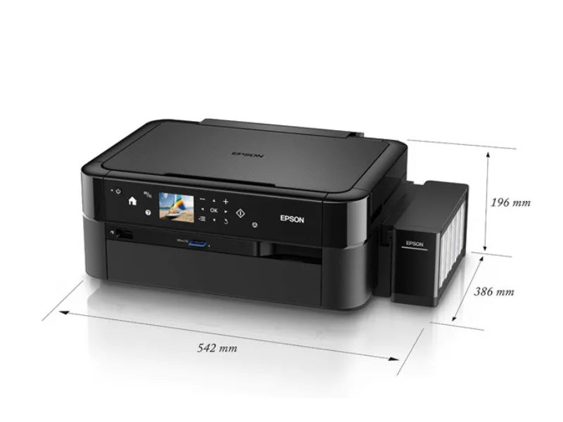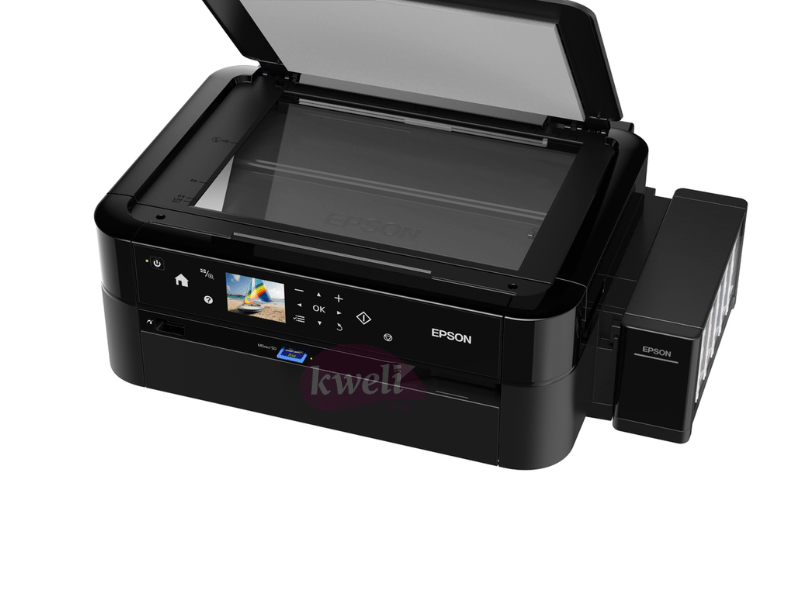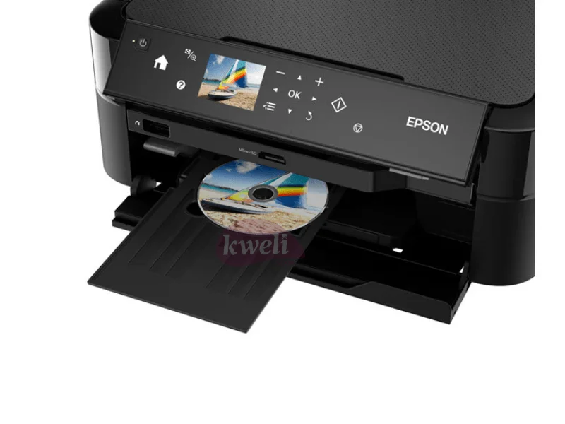 Epson EcoTank Multifunction Photo Printer L850 Multi-functional Borderless Photo Printing with savings you can enjoy Imaging enthusiasts and professionals can look forward to the 6-colour ink tank system, presenting vibrant borderless prints and unrivalled performance at a remarkably low cost through this 3-in-1 photo printer. Print, Copy, Scan High-yield ink bottles 2.7 colour LCD screen Direct printing via memory card slot, USB port and PictBridge CD/DVD printing Superb Savings and Page Yield Additional Features for Convenient Usage Direct Printing onto CDs/DVDs Superior Print Speed for Better Productivity Unsurpassed Print Quality Enjoy Peace of Mind with Epson Warranty Quality That Shines. Value That Lasts Print Method: On-demand inkjet (Piezoelectric) Maximum Print Resolution: 5760 x 1440 dpi (with Variable-Sized Droplet Technology) Minimum Ink Droplet Volume: 1.5 pl Control Panel: 2.7” TFT Colour LCD Print Direction: Bi-directional printing, Uni-directional printing Nozzle Configuration:90 nozzles, each colour (Cyan, Light Cyan, Magenta, Light Magenta, Yellow, Black) Power consumption: Operating: 12 watts, Sleep: 1.6 watts, Power Off: 0.35watts Standby: 5.3 watts | #KweliGotYou| Order Epson EcoTank Multifunction Photo Printer L850; Photo Printing, CD/DVD Printing, A4 Print, Scan & Copy, 12/5.3watts online and enjoy free delivery across Uganda > Long warranty > Lifetime After-sales Support