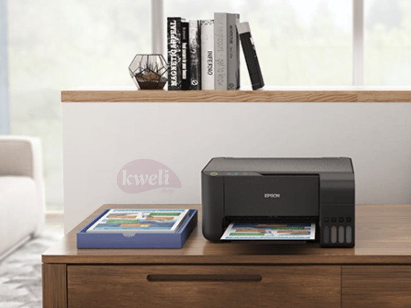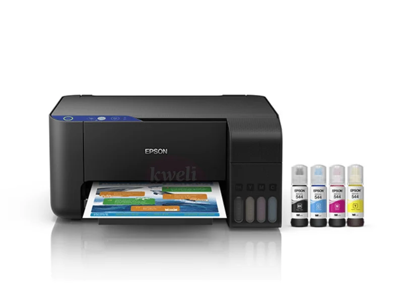 Epson Ecotank Printer L3110 Multifunctional 3:1 - print, copy, scan Prints up to 7.500 color pages or 4.500 pages in black New tank design integrated into the printer to reduce space Peace of mind with 100% cartridge-free printing Flexible paper management - Print 100 pages without interruptions. Scan with great quality - Scanner with 48-bits x 600 x 1200 dpi. Print quickly - Up to 33 ppm black and 15 ppm color. Print borderless photos - 3,5" x 5" (9 x 13 cm) / 4" x 6" (10 x 15 cm). Ultra-low printing costs - Save up to 90% on ink with replacement bottles vs. cartridges³. Thousands of prints without interruptions¹ - One set of replacement bottles equals 35 sets of ink cartridges². Bottles with EcoFitTM system - Bottles with ultra-high capacity and great quality. Peace of mind with 100% cartridge-free printing - More savings, better value. More compact design - New tank design integrated into the printer to reduce space. Front-facing tanks - For easy monitoring of inks. New easy filling system - Bottles with automatic filling, keyed for easy and clean filling of each colour. Printing Technology: MicroPiezo® 4-colour inkjet technology (CMYK) Maximum Print Resolution: Up to 5760 x 1440 dpi optimized resolution on various paper types ISO Print Speed: Black 10.5 ISO ppm and colour 5 ISO ppm Print Speed: Black 33 ppm and colour 15 ppm Minimum Ink Droplet Size: 3 picoliters Power consumption: 12 watts (Active), 3.9 watts (standby) | #KweliGotYou| Order Epson Ecotank Printer L3110; All-in-One Printer + Scan and Copy, 12/3.9watts online and enjoy free delivery across Uganda > Long warranty > Lifetime After-sales Support
