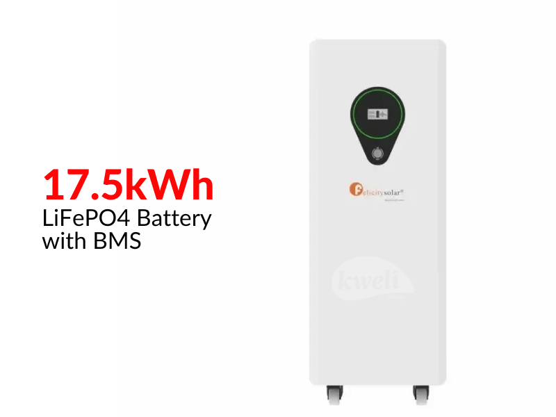 Felicity 17.5kWh LifePO4 Battery with BMS LPBF48350 350AH 48V Battery with BMS, CAN & RS485 Lithium battery LiFePO4 48v 350Ah 17.5kWh for solar system solutions. Long life is guaranteed with deep cycles. The battery has built-in BMS that monitors its operation and prevents the battery from operating outside designed limitations. Adding more battery packs in parallel connections can easily expand the battery. 95% DOD, More than 6000 cycle times. Convenient CAN&RS485 Communication. Higher energy density, smaller volume 154kg | #KweliGotYou| Order Felicity 17.5kWh LifePO4 Battery with BMS LPBF48350; 350AH 48V Lithium Ion Phosphate Battery, Fast Charging, Long Life online and enjoy free delivery across Uganda > Long warranty > Lifetime After-sales Support