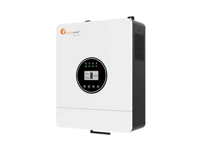 Description Felicity 6kVA/6kW 48V Hybrid Inverter IVEM6048-II features 6kVA/6kW hybrid inverter with integrated MPPT charge controller Supports up to 7.5kWp PV input at up to 500Voc Pure sine wave output suitable for sensitive electronics Battery-independent startup and operation supported LCD display with flexible configuration: charging priority, voltage ranges, etc. Built-in WiFi receiver for mobile/online monitoring Parallelable up to 12 units for larger systems Generator input can function as a smart AC output Full system protection: overvoltage, short circuit, overload, overtemperature