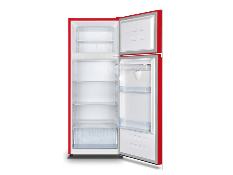 Hisense 270 liter Refrigerator with Dispenser, Red Top mount freezer Water Dispenser Smart electronic control Defrost Interior LED light for fridge compartment Input Voltage: 220-240V Humidity Control Red in Colour 3-year warranty