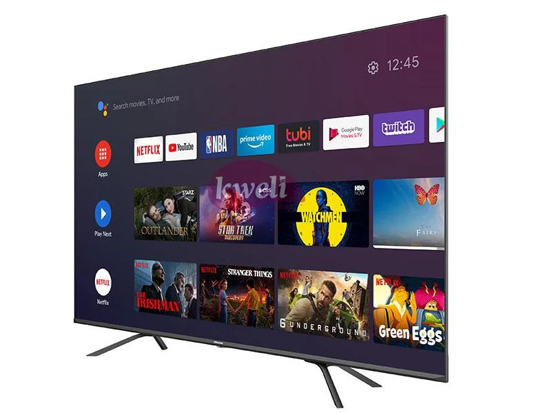 Hisense 49 inch Android TV, LED Full HD 1080p resolution produces clear pictures Ultra Smooth Motion for a better image HDMI and USB ports for quick connecting with your favourite devices Minimizes blur in fast-moving scenes Preloaded with application Netflix one-tap remote Youtube one-tap remote Enjoy more than 4,000 apps and games from the Google Play store Built-in WiFi Receiver Built-in Free-to-air Receiver 5-year free Hisense warranty | #KweliGotYou| Order Hisense 49 Inch Android TV, Full HD LED Smart TV with Built-in Chromecast, Bluetooth, WiFi and Free-to-Air Receiver - 49N2182PW online and enjoy free delivery across Uganda > Long warranty > Lifetime After-sales Support