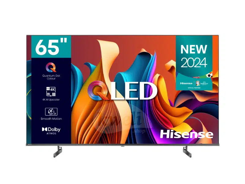 Description Hisense 65-inch QLED 4K UHD Smart TV 65Q6N Elevate your entertainment with the Hisense 65″ QLED 4K UHD Smart TV 65Q6N! Featuring VIDAA OS, Quantum Dot Colour, 120Hz Refresh Rate + Gaming Mode, Dolby Vision & Atmos, and a sleek frameless design. Perfect for movies, gaming, & streaming. Stunning visuals, seamless performance! Hisense 65-inch QLED 4K UHD Smart TV 65Q6N Screen Size: 65 inches Resolution: 4K Ultra HD (3840 x 2160 pixels) Colour Technology: Quantum Dot Colour Refresh Rate: 120Hz Gaming Mode: Game Mode Plus Operating System: VIDAA OS HDR Support: Dolby Vision, HDR10, HLG Audio Technology: Dolby Atmos Upscaling: 4K AI Upscaler Voice Control: Yes Bezel Design: Frameless Sound Output: 24W Total Connectivity: HDMI (x3), USB (x2), Optical Audio Out, Ethernet, Bluetooth 5.3, Dual-Band Wi-Fi Power Consumption: 170W Standby Power Consumption: <0.5W Dimensions (without stand): 1453 x 840 x 76 mm Weight (without stand): 15 kg Wall Mount Compatibility: VESA 400 x 300 mm