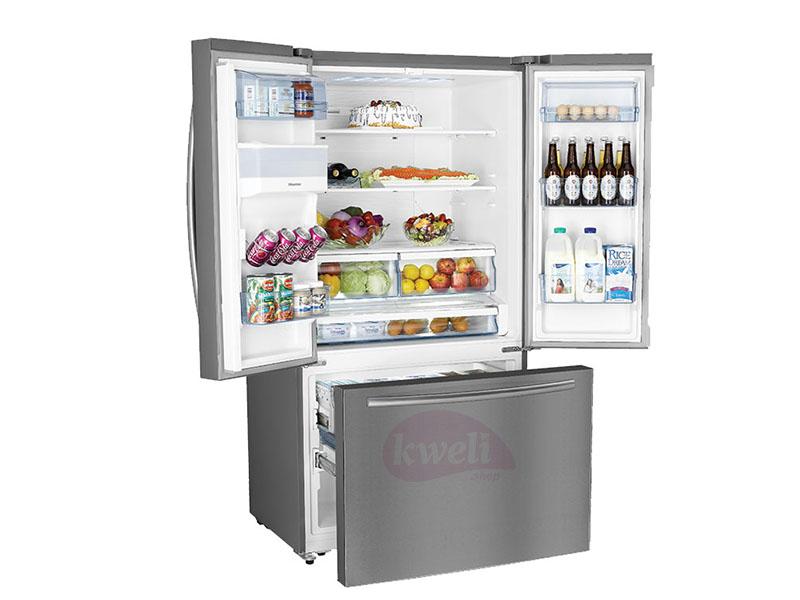 Hisense 697-liter French Door Refrigerator Gross Capacity: 697 Litres Net Capacity: 536 Litres Energy Rating: A+ Frost Free (Total No frost) Water Dispenser XXL Bottle Rack Moisture Fresh Crisper Soft LED lighting Electronic Temperature Control/Display Refrigerant: R600a Colour: Stainless Steel | #KweliGotYou| Order Hisense 697-liter French Door Refrigerator with Dispenser RF697N4ZS1 - Multi Door Refrigerator, Frost-free, Stainless Steel Finish online and enjoy free delivery across Uganda > Long warranty > Lifetime After-sales Support
