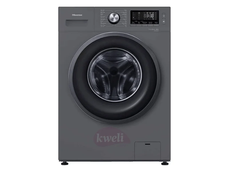Hisense 7kg Front Load Washing Machine Energy Saving for Money (Energy Efficiency Class: A+++) Super Quick Wash for Time Saving Intelligent LED Display Snowflake Drum for Clothes Protecting Smart Spin Balance control. Drum Self Clean for Health 45-degree High Handle Design Max Spin Speed Option: 1200 rpm 3-year warranty | #KweliGotYou| Order Hisense 7kg Front Load Washing Machine A+++ - WFQP12EVMT online and enjoy free delivery across Uganda > Long warranty > Lifetime After-sales Support