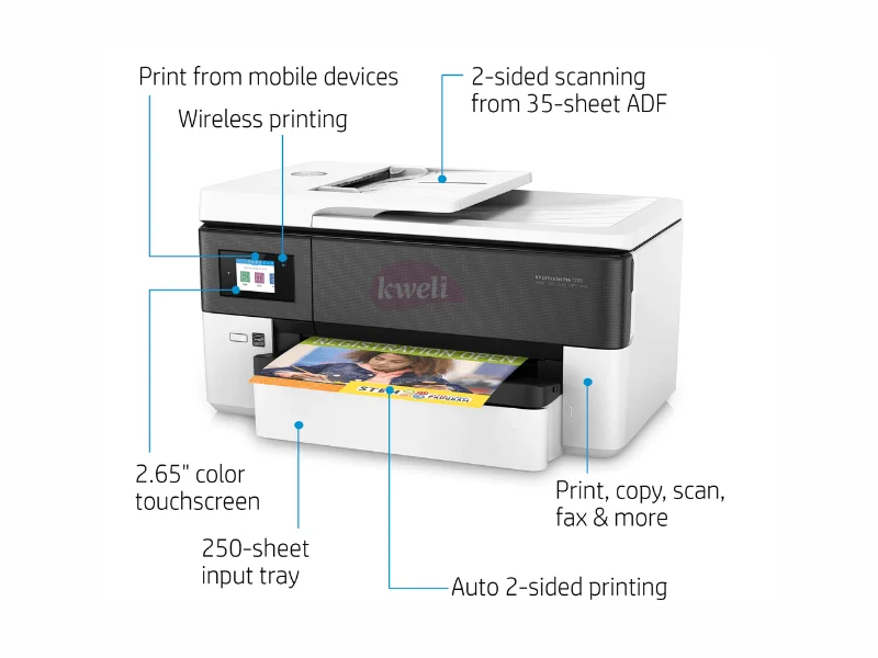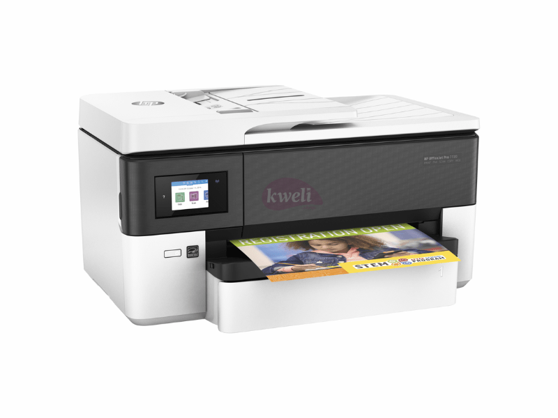HP OfficeJet Pro 7720 All-in-One A4/A3 Printer Print, copy, scan, fax Print up to 11 x 17 inches (A3) HP Smart App Easy mobile printing (Easily print from your smartphone, tablet, and notebook at work, home, or on the go) Wi-Fi Direct High-yield ink cartridges 35-page ADF 2.7-inch color touchscreen Print quality Print durability Borderless printing Automatic 2-sided printing 250-sheet paper tray | #KweliGotYou| Order HP OfficeJet Pro 7720 All-in-One A4/A3 Wireless Printer; Colour Print, Copy, Scan, Fax, WIFI online and enjoy free delivery across Uganda > Long warranty > Lifetime After-sales Support
