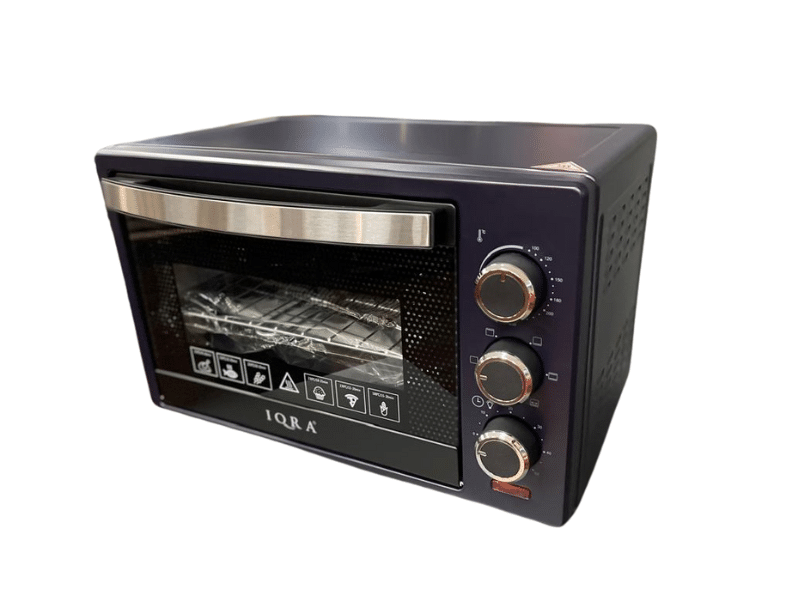 Description Iqra 19L Premium Electric Oven IQ-EO22 Small but mighty! Bake, grill, and roast with ease using the 19L Iqra Electric Oven. With 1280W power, rotisserie, and a 60-minute timer, it’s perfect for quick family meals.