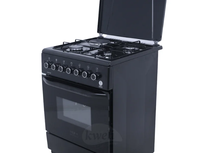 Buy new IQRA 50x60cm Cooker IQ-C2011-BLK; 3 Gas Burners + 1 Electric Plates with Electric Oven and Grill; Oven Timer, Black in Uganda - - Free Delivery > Long warranty > Lifetime After-sales Support