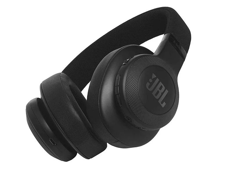 Description JBL E55BTC The JBL Bluetooth headphones deliver pure music enjoyment with the unmistakable JBL Signature Sound and their precisely fitting ergonomic design. When fully charged, the headphones can play music for up to 20 hours with a very short charging time of just 2 hours. Music playback and calls can either be easily controlled using the buttons on the earpiece or using the one-button remote control on the cable supplied . The tangle-free, textile-sheathed cable with its angled connector ensures that cable clutter is a thing of the past.