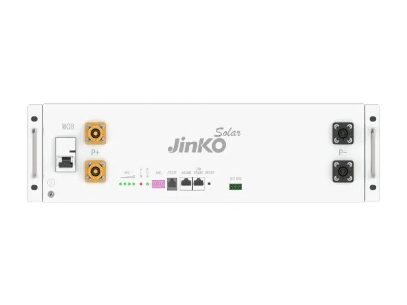 Description Jinko Solar 100Ah 48V 4.8kWh Lithium Solar Battery Model: JKS-B48100-HI-D1 Battery Type: Lithium Iron Phosphate (LFP, LiFePO4) Nominal Voltage: 48V Operation Voltage Range: 40.5 – 54V Nominal Capacity: 100Ah Energy Capacity: 4.8kWh Usable Capacity: >4.5kWh (at 25°C) Cycle Life: >6000 cycles @ 80% DOD (0.5C, 25°C, EOL70%) Warranty: 10 years Weight: 41 ± 2 kg Dimensions: 442 × 430 × 130.5 mm (±2) Enclosure Protection: IP20 Certifications: IEC62619, CE, UN38.3 Performance Recommended Charge Current: 50A Recommended Discharge Current: 50A Max. Charge Current: 100A Max. Discharge Current: 100A Peak Discharge Current: 300A Operating Conditions Charging Temperature Range: 0°C to 55°C Discharging Temperature Range: -20°C to 60°C Storage Temperature: 0°C to 30°C Humidity: 5% – 95% Features & Benefits Long Life: 6000+ cycles backed by a 10-year warranty Safe Chemistry: LiFePO4 cells with stable thermal performance Modular & Scalable: 4.8kWh per unit, easily expandable for larger systems Smart BMS: Built-in management system for protection and performance monitoring Wide Application: Suitable for on-grid, off-grid, and hybrid systems Compact & Lightweight: Just 41kg with slim rack-mount design Highlights 48V, 100Ah (4.8kWh) per module Usable capacity >4.5kWh Over 6000 cycles @ 80% DOD 10-year warranty Stackable, modular design for easy expansion Safe LFP technology with built-in BMS Jinko Solar 100Ah 48V 4.8kWh Lithium Solar Battery Battery Type: Lithium Iron Phosphate (LFP, LiFePO4) Nominal Voltage: 48V Operation Voltage Range: 40.5 – 54V Nominal Capacity: 100Ah Energy Capacity: 4.8kWh Usable Capacity: >4.5kWh (at 25°C) Cycle Life: >6000 cycles @ 80% DOD (0.5C, 25°C, EOL70%) Long Life: 6000+ cycles backed by a 10-year warranty Safe Chemistry: LiFePO4 cells with stable thermal performance Modular & Scalable: 4.8kWh per unit, easily expandable for larger systems Smart BMS: Built-in management system for protection and performance monitoring Wide Application: Suitable for on-grid, off-grid, and hybrid systems Compact & Lightweight: Just 41kg with slim rack-mount design