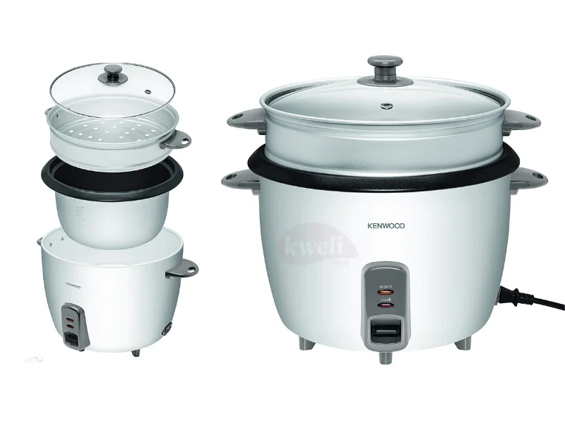 Kenwood Rice Cooker RCM69 Size – 2.8 Liters Power – 900 Watts Cool-touch handles for safe handling Handle slots work as spatula holder Steam basket for simultaneous steam cooking Non-stick cooking pot for easy cleaning Cook and Keep Warm indicator lights One-touch button for simple cooking operation Detachable cord for portable use A measuring cup and spatula are included | #KweliGotYou| Order Kenwood 2.8-liter Rice Cooker with Steam Basket RCM69,900watts online and enjoy free delivery across Uganda > Long warranty > Lifetime After-sales Support