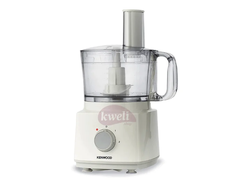 Kenwood Food Processor 750 Watts Motor for optimal performance 2 speed Plus Pulse For Flexible User Control 2 Litre Bowl Capacity, Stainless Steel Knife Blade for chopping and Pureeing Interchangeable Disc for Coarse Grating, Thick Chip Sticks, Fine Slicing and More interchangeable Chopper Blades for Chopping and Pureeing, Plastic Blade for Kneading Bread and Pastry Mixes included components: blender, dough hook, grating disc, slicing disc | #KweliGotYou| Order Kenwood Food Processor FDP03 - Blender, Dough hook, Grating Disc, Slicing Disc, and more online and enjoy free delivery across Uganda > Long warranty > Lifetime After-sales Support