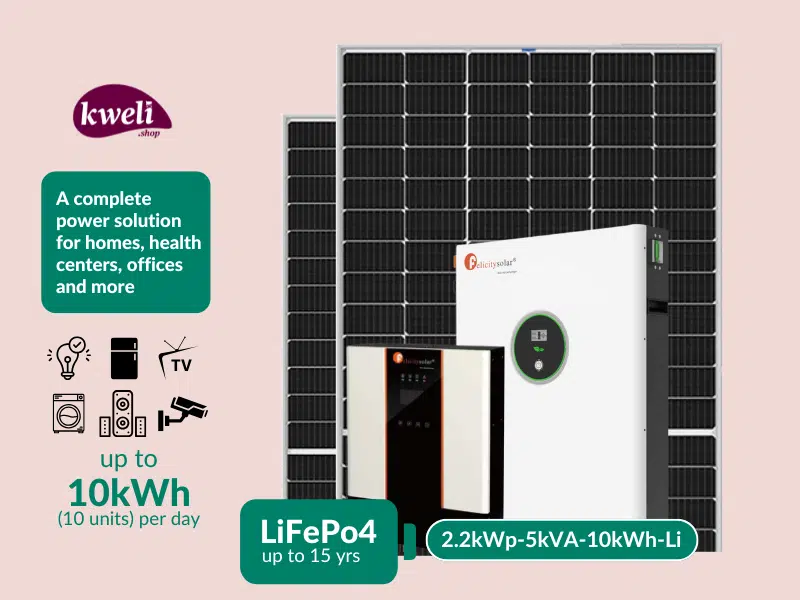 Buy new Kweli Energy 2.2kWp-6kVA-10kWh-Lithium Hybrid Solar System with WiFi remote monitoring; A complete power solution for home or business in Uganda - - Free Delivery > Long warranty > Lifetime Af