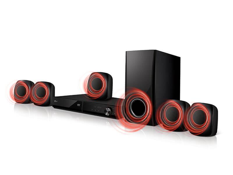 LG Home Theater 300 Watts Output Powerful Bass Sound Wireless Bluetooth Audio Streaming DVD, Mp3, USB Flash, FM Radio Aux in, Portable in 5.1 Channel Real Surround Sound Wireless Bluetooth Audio Streaming 2-year warranty