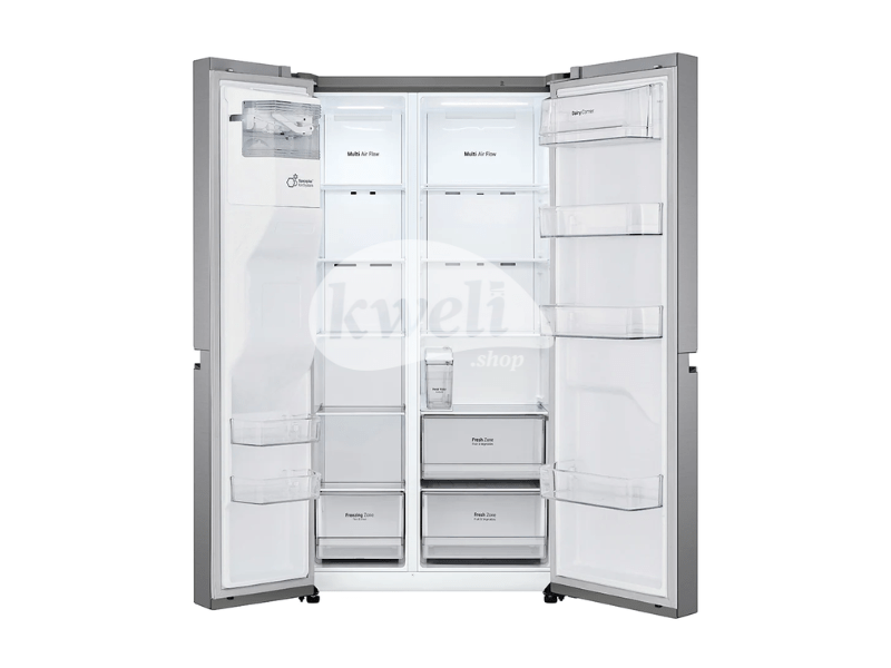 LG 649L Refrigerator GC-L257JLXL Gross capacity: 674 litres UltraSleek Door LinearCooling™ Door Cooling Multi-Air Flow ThinQ™ - Smart Diagnosis Smart Inverter Compressor™ Width x Height x Depth - Product: 913 x 1790 x 743 Temp. control - Door alarm Express Freeze Express Cool Child Lock Handle Type - Pocket Refrigerant: R600a-60g Non-plumbing Dispenser - Water Dispenser Dispenser - Ice Dispenser (Cube Ice) Dispenser - Water Dispenser Shelf - Tempered Glass Power consumption (max): 500 watts | #KweliGotYou| Order LG 649L Refrigerator GC-L257JLXL; Side-by-Side Refrigerator, Smart Inverter, Smart Diagnosis™, Dispenser, Total No Frost, 500 watts online and enjoy free delivery across Uganda > Long warranty > Lifetime After-sales Support