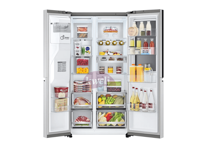 LG 674/635-litre Refrigerator GC-X257CSES Side-by-Side Refrigerator Gross Capacity: 674 litres Net Capacity:635 litres Water and Ice Dispenser with UV protection Child Lock Inverter Linear Compressor InstaView Door-in-Door™ UVnano® Water Dispenser Hygiene Fresh+™ DoorCooling+ ThinQ 2 year warranty | #KweliGotYou| Order LG 674/635-litre Refrigerator GC-X257CSES; Knock-knock, Side By Side Fridge with Instaview & Door-in-Door™ in Noble Finish online and enjoy free delivery across Uganda > Long warranty > Lifetime After-sales Support