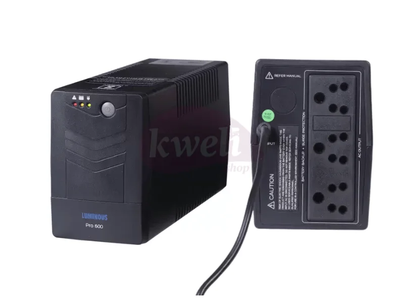Luminous 600VA 360W Computer UPS LB600PRO Capacity: 600VA, 360watts Voltage: 230V, AC Voltage range: 140-300VAC Compact size, Microprocessor control optimizes reliability Boost and buck AVR voltage stabilization Auto restart while AC is recovering Off-mode charging Cold start function Generator compatible option Made in India 1-year warranty | #KweliGotYou| Order Luminous 600VA 360W Computer UPS LB600PRO - Uninterupted Power Supply - Made in India online and enjoy free delivery across Uganda > Long warranty > Lifetime After-sales Support